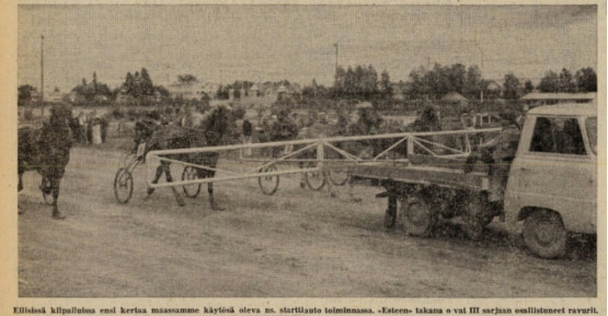 Ensimmäiset autolähdöt Joensuussa ajettiin Pika-Paketti Kettuselta lainatulla kuljetusautolla. Auton lavalle oltiin asetettu erillinen ”este”, toisin sanoen siivekkeet, jotka keräsivät hevoset auton taakse ja estivät niitä ohittamasta edessä kiihdyttänyttä autoa. Tekniikka ei 60-luvun alussa ollut vielä täydellisesti hioutunutta, ja sattuipa kerran niinkin, että kyseinen siipihäkkyrä putosi kiihdytysvaiheessa suoraan takana juosseiden hevosten eteen! Vahingoilta onneksi vältyttiin.